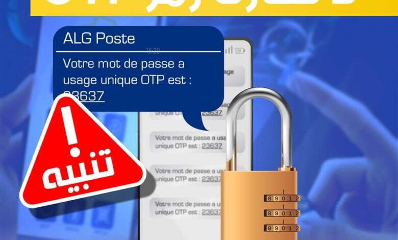 حذرت مؤسسة بريد الجزائر، الأربعاء، زبائنها من مشاركة رمز “OTP”، الذي يصلهم عبر رسالة نصيحة لتأكيد المعاملات المالية عبر الأنترنات.
